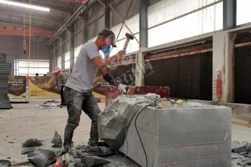 置頂芝麻黑G654石材菠蘿面的加工(手工敲打)過程圖