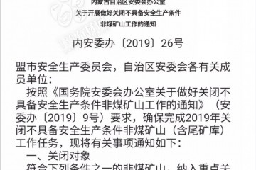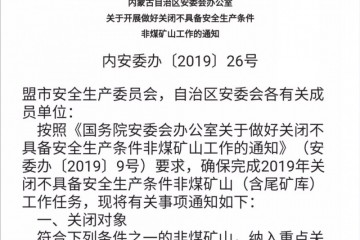 近日,自治區安委會辦公室印發了《關于開展做好關閉不具備安全生產條件非煤礦山工作的通知》,要求從8月16號開始到年底,全區計劃年底前關閉70多座非煤問題礦山,消除安全隱患。據了解,通知明確關閉對象包括:存…