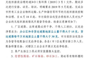 今天,收到粉絲的信息提供,焦作市下發《關于加強工業企業五組織排放治理的通知》。 現場測量一平方米塵土重量,要求辦公和非貨運道路地面塵土量不能大于15克,貨運道路每平方米地面塵土不能大于30克。達不到標準…