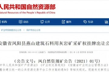 近日,鳳陽縣自然資源和規(guī)劃局發(fā)布公告,擬掛牌出讓安徽省鳳陽縣燕山建筑石料用灰?guī)r礦采礦權(quán)。該礦區(qū)面積0.931平方千米,開采標高118.1米至10米,可開采建筑石料用灰?guī)r,資源儲量5270.1萬立方米(14176.57萬噸)…