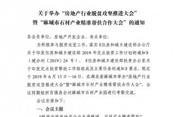 為切實幫扶麻城石材產業,積極響應黨中央關于脫貧攻堅的決策部署,積極參與脫貧攻堅工作,貫徹落實《住房和城鄉建設部辦公廳關于印發住房和城鄉建設部2019年定點扶貧工作計劃的通知》(建辦村〔2019〕24號)、《…