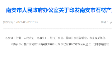8月9日,南安市人民政府印發《南安市石材產業轉型升級實施方案》(以下簡稱《方案》),《方案》政策解讀如下:制定背景根據《關于南安市石材行業整治工作現場督導專題會紀要》(泉州市人民政府專題會議紀要〔202…