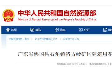 近日,自然資源部礦業(yè)權(quán)市場(chǎng)發(fā)布了廣東清遠(yuǎn)佛岡縣石角鎮(zhèn)豬古嶺礦區(qū)建筑用花崗巖礦采礦權(quán)掛牌出讓公告。該礦資源儲(chǔ)量7679.33萬(wàn)方,年產(chǎn)規(guī)模400萬(wàn)方,出讓年限21.3年,起始價(jià)8.8億元。掛牌時(shí)間2023年5月26日至2023…
