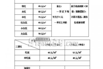 廣西岑溪產花崗巖(岑溪紅、海棠紅、三堡紅)等石板材漲價,每平米上調3元