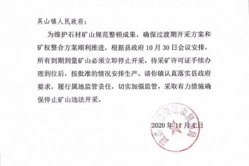 隨縣自然資源和規(guī)劃局隨縣自然資源和規(guī)劃局關(guān)于隨縣規(guī)范石材礦山開采的函吳山鎮(zhèn)人民政府:為維護石材礦山規(guī)范整頓成果,確保過渡期開采方案和礦權(quán)正和方案順利推進,根據(jù)縣政府10月30日會議安排,所有到期到量礦…