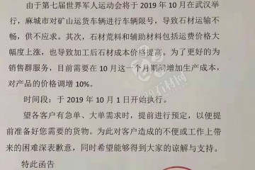 置頂原材料一路上漲,麻城市多家石企發布漲價通知!