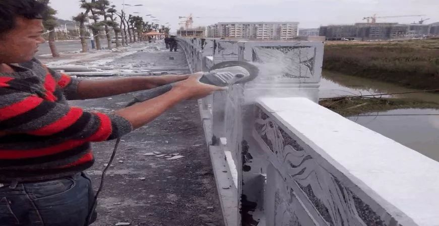 ⑹用水清洗石欄桿表面的泥垢、水銹、粉塵等雜質。