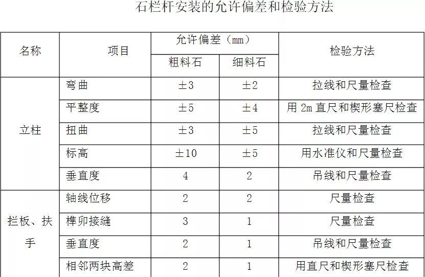 ⑴石欄桿應豎直,直線段應順直,曲線段應圓順。