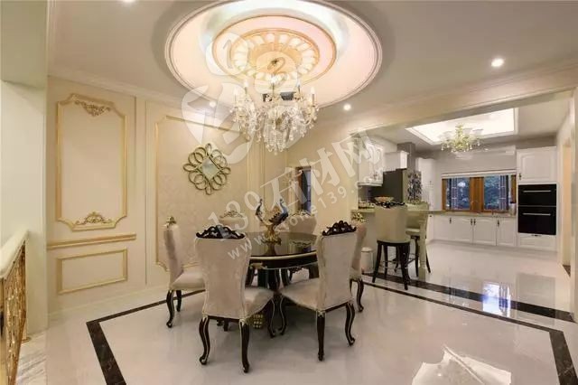 它與很多材料都能很好搭配,給人是溫暖舒適細(xì)膩溫馨的感覺。但也有其弱點(diǎn),就是遠(yuǎn)看起來很像瓷磚,以至于很多人花了大價錢卻不出效果,其實(shí)莎安娜更適合做造型處理,比如歐式造型用莎安娜效果就很好。
