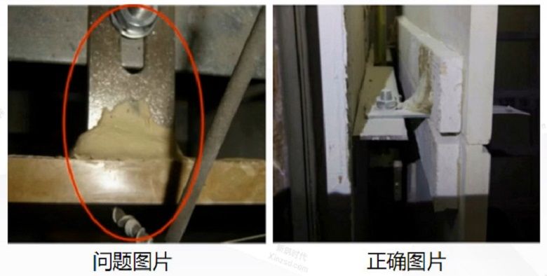 問題分析:預埋件固定位置離墻角過近,膨脹螺栓直接打在墻體抹灰層上導致墻角破壞。