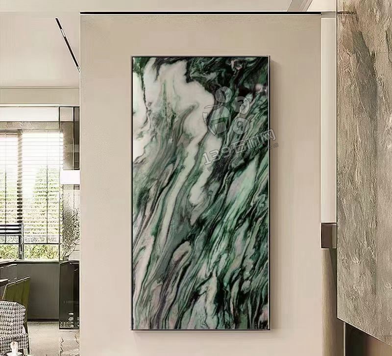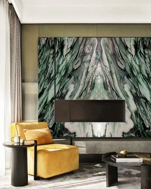 挪威森林綠,清新大氣的藍綠色基底,自然錯落的黑灰色線條,晶瑩剔透的奢石,宛若宇宙星河璀璨,盡顯光彩下的神秘奢華,喚醒空間永恒魅力。