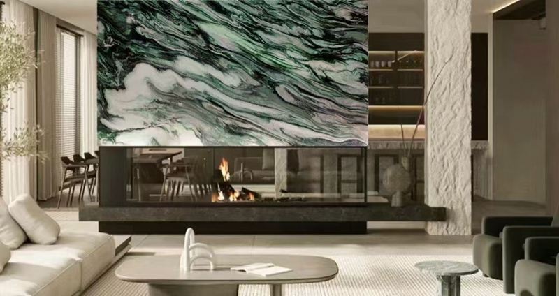 極具觀賞性的臺面使它在家具中深受追捧,挪威森林綠在燈光的折射下散發出別樣的神秘魅力,宛若星辰熠熠生輝。