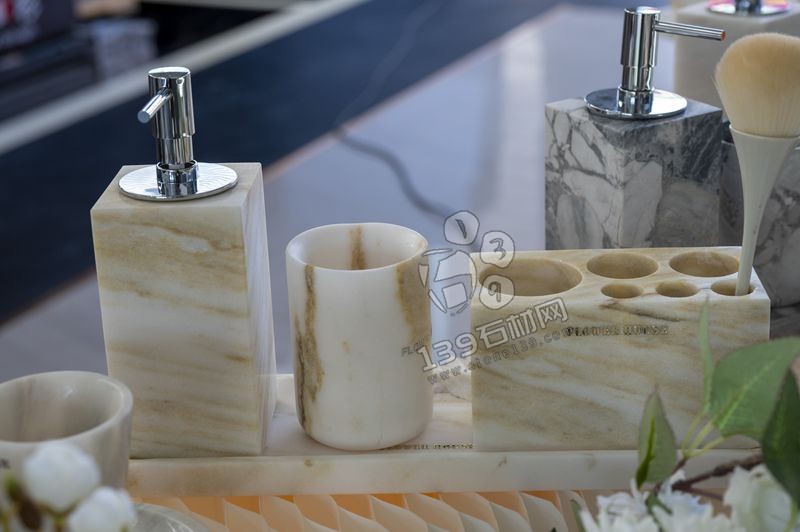 石材衛浴器具:天然石材可以用于制作洗手盆、浴缸等衛浴器具。例如,用天然火山巖制作的浴缸,其獨特的多孔結構具有良好的防滑性,而且火山巖本身含有多種對人體有益的礦物質,在沐浴過程中可能會對人體皮膚產生一定的保健作用。用玉石制作的洗手盆,外觀溫潤、質感細膩,給人一種高端奢華的感覺。