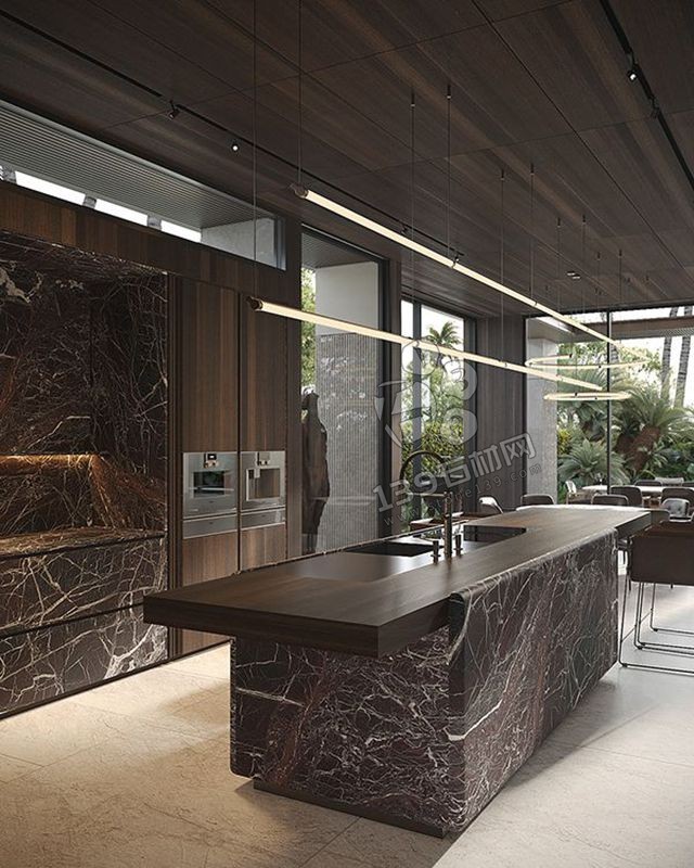 結合燈光設計(如線性燈、壁燈),烘托石材質感。