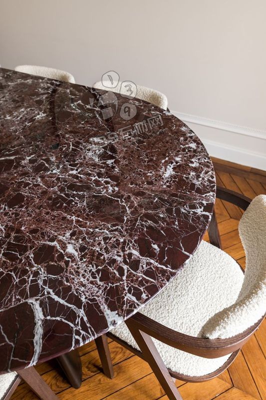 紫羅紅大理石的粉色調與天然紋路,能為現代家居注入一抹柔美而不失力量的氣息。推薦將其用于小面積桌面裝飾,如搭配金屬框架茶幾(黃銅/不銹鋼),冷暖材質碰撞形成視覺張力;或作為餐桌中心臺面,配以白色巖板或木質基座,營造輕奢氛圍。
