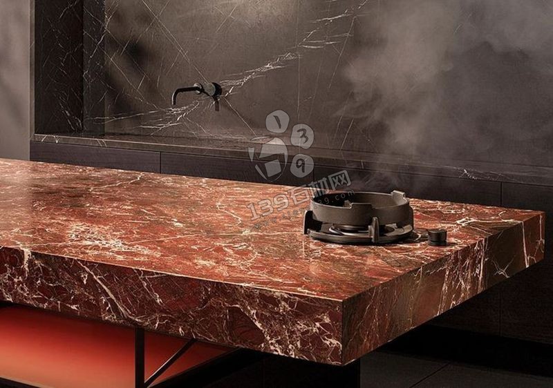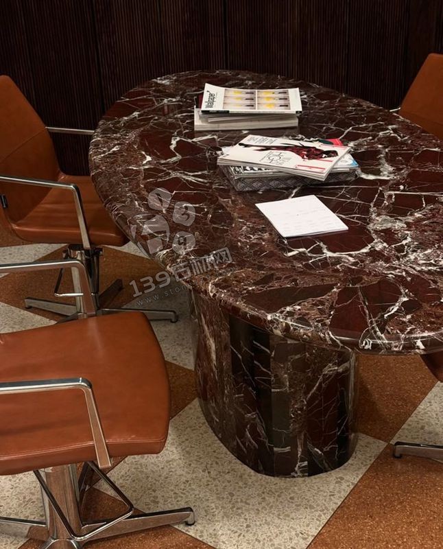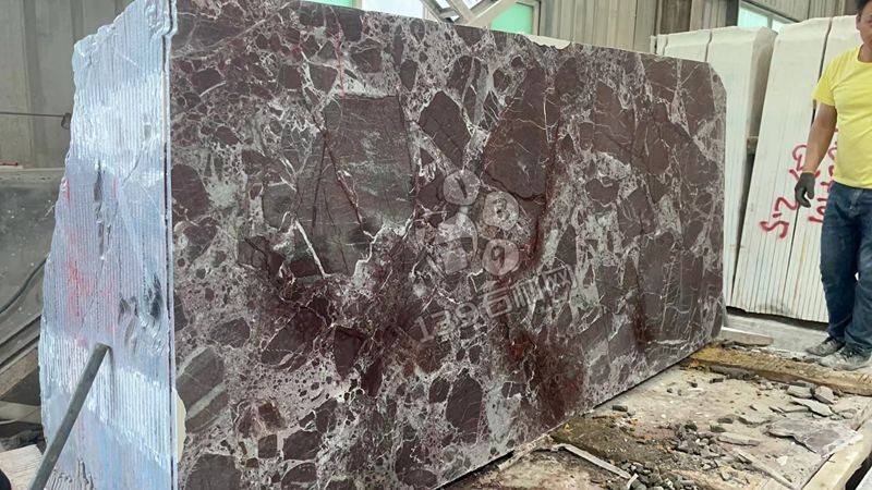 室內裝置:定制紫羅紅大理石茶幾、邊柜臺面,或作為藝術擺件的基底材質。
