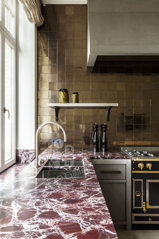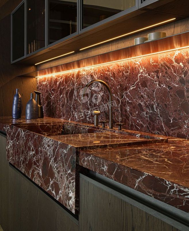 紫羅紅大理石,一種自帶浪漫與貴氣的天然石材,因其獨特的粉紅色澤與細膩紋理,成為設計師手中的“點睛之筆”。然而,受限于其色彩濃烈、紋理不規則的特性,大面積鋪陳易顯視覺疲勞,反而以局部點綴的方式更能凸顯其高級感。本文將結合實際案例,解析紫羅紅大理石在桌面、背景墻、浴室等場景中的巧妙應用,帶你解鎖它的“低調奢華”之道。