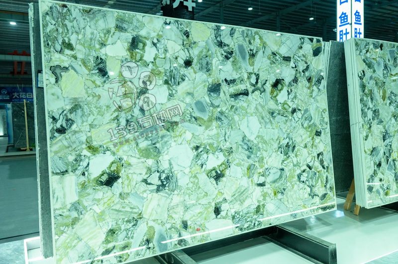 工藝升級:做水刀拼花(如將冷翡翠與黑色石材拼接成幾何圖案)用于玄關地面;或做弧形墻面鋪貼,弱化石材的冰冷感,增加空間柔和度。