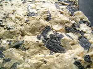 19、花崗閃長巖:其特點是斜長石的含量多于鉀長石,一般是斜長石占長石總量的2/3左右,而暗色礦物則以角閃石為主,部分為黑云母。石英含量一般比花崗巖略少,是花崗巖向閃長巖過度的一種中酸性巖石。花崗閃長巖比花崗巖含較多的斜長石和暗色礦物(斜長石多于鉀長石,而花崗巖反之),所以巖石的顏色比花崗巖稍深一些,呈灰綠色或暗灰色。