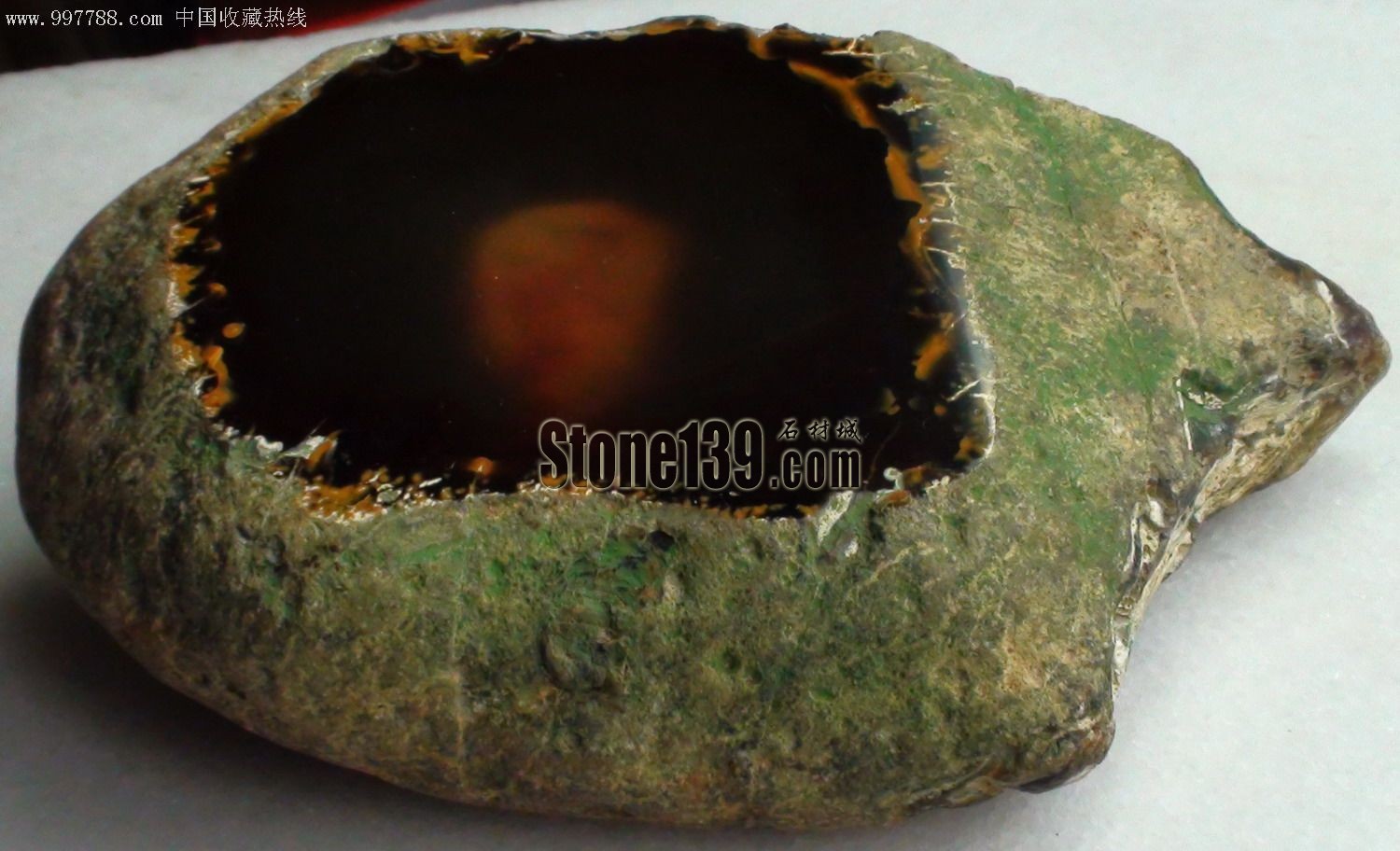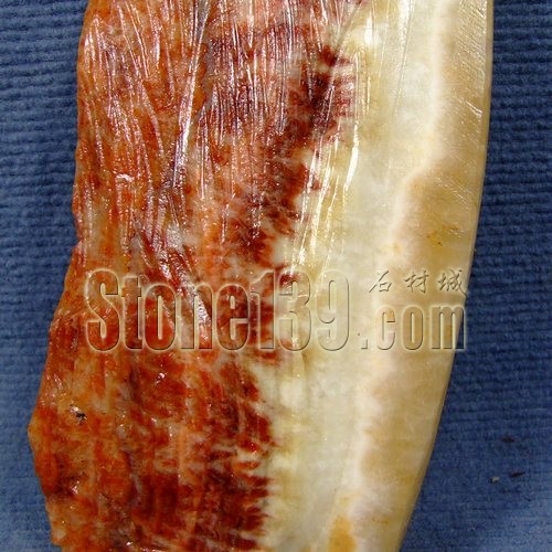 4、黃蠟石:又名龍王玉,因石表層內蠟狀質感色感而得名。屬矽化安山巖或砂巖,主要成份為石英,油狀蠟質的表層為低溫熔物,韌性強,硬度 6.5~7.5。 “豬肉石”是地質運動過程中沉積巖或變質巖與其他礦物質接觸色化而成,多產于廣西柳州市。因其長有“皮肉”、“肥肉”和“瘦肉”多層次,顏色酷似豬肉,稱為“豬肉石”。收藏者多把“豬肉石”看做吉祥、喜慶的象征。黃蠟石質感源于石英,而其顏色則來自氧化的鐵質。