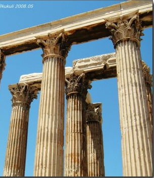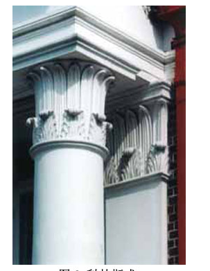 它最早可能出現于雅典奧林帕斯山的宙斯神廟,四個側面都有渦卷形裝飾紋樣,并圍有兩排葉 飾,特別追求精細勻稱,顯得非常華麗纖巧。希臘科斯林柱式(Corinthian Order)的比列比愛奧尼柱更為纖細,柱頭是用毛莨葉(Acanthus)作裝飾,形似盛滿花草的花籃。