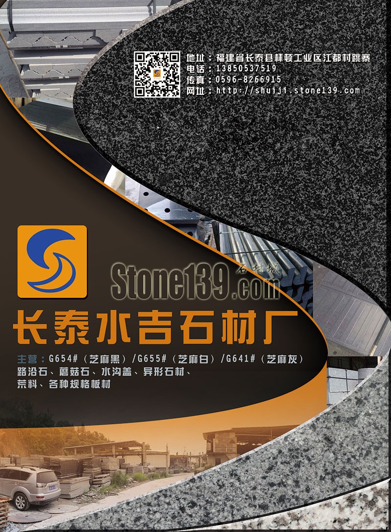長泰縣水吉石材廠坐落于福建省漳州市長泰縣林墩江都工業(yè)區(qū),是一家礦山采集及加工一體的生產(chǎn)廠家,北鄰G654#花崗巖礦區(qū)15km,距廈門港60km,交通便捷。公司主營G654#(芝麻黑)、G655#(芝麻灰)、G641#荒料以及各種規(guī)格的磨光板、火燒板、薄板、工程板、墓碑石、盲人石、環(huán)境石、地鋪石、路沿石、小方塊、臺板及各種建筑工程配套用石的生產(chǎn)、加工、銷售。產(chǎn)品遠(yuǎn)銷香港、日本、歐洲、美國等地。 G654花崗巖是世界上最著名的花崗巖石種之一,可以作為板材、地鋪、臺面、雕刻、工程外墻板、室內(nèi)墻面板、地板、廣場工程板、環(huán)境裝飾路沿石等各種建筑和庭園石材的材料歡迎廣大客戶來電咨詢洽談。
