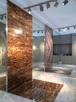 另外,9月30日,意大利維羅納國際石材展覽會開幕,接棒博洛尼亞國際陶瓷衛(wèi)浴展,成為建材行業(yè)聚焦新亮點,簡一大理石瓷磚再次受邀出席。此次,簡一大理石瓷磚在維羅納石材展的12號館,D8展位,面積為88平方米,再次由盧卡•羅西(Gianluca Rossi)帶領的意大利設計團隊操刀呈現(xiàn)簡一“世界石材實驗中心”主題館。