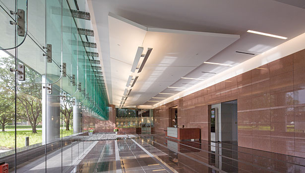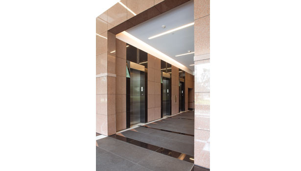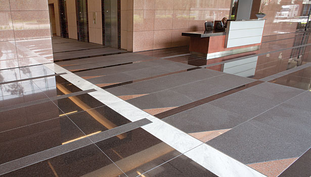 整個項目花了一年半的時間里從開始到結束完成設計,約9600平方英尺的紅色花崗巖,3200平方英尺的Mesabi黑色花崗巖和2600平方英尺的冷泉黑色花崗巖拋光,打磨和熱完成工作——由Coldspring冷泉,MN。 的材料被用于部分外立面,內(nèi)部大堂墻壁和地板上。 此外,拋光切諾基白色大理石鋪路材料,由田納西大理石公司Friendsville,TN,被合并為口音到地板的模式。