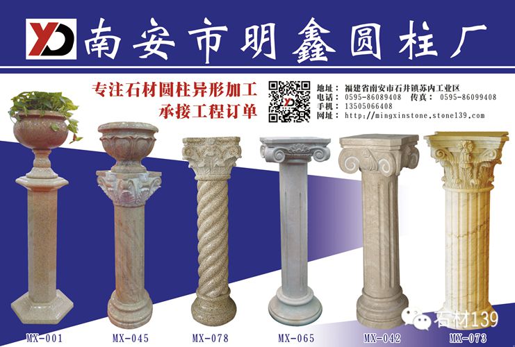 南安市明鑫圓柱廠 主營石材圓柱 羅馬柱 欄桿 異形加工