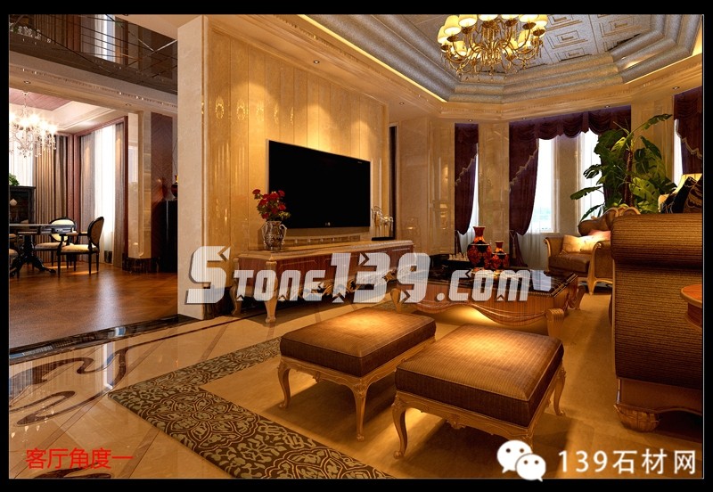 土豪金即視感的大連金州1.7英里別墅大理石案例鑒賞
