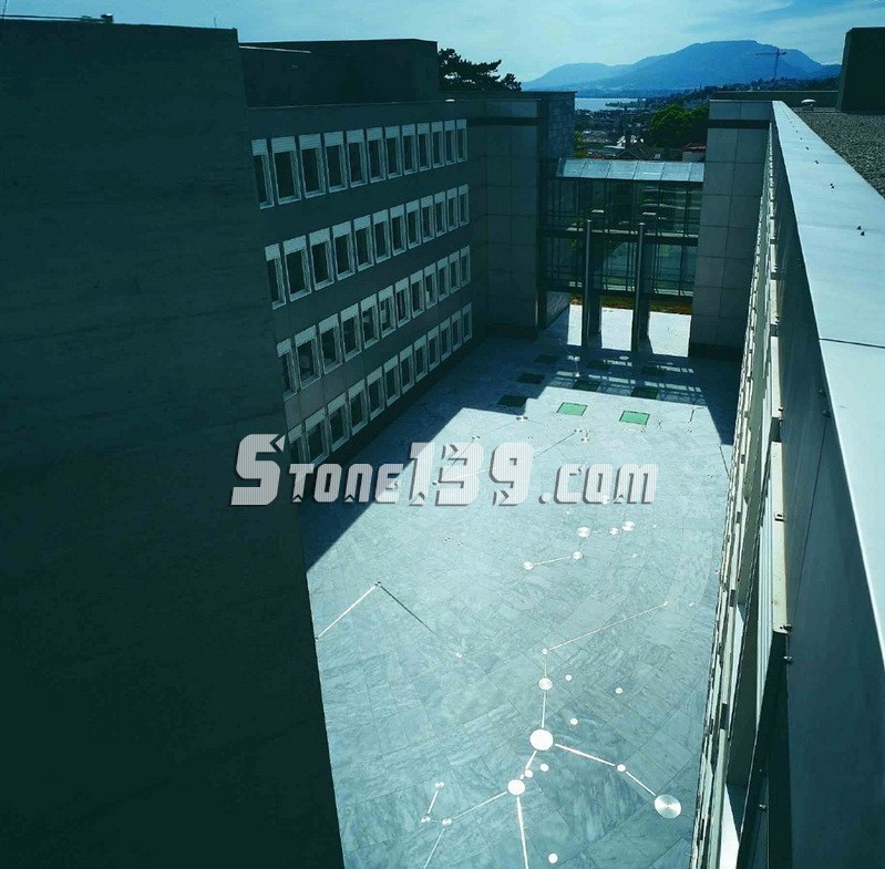 1993年,瑞士為了在Neuchâtel大學一個長118米、寬16米的一個內院里豎立一尊藝術品而進行招標。居住在德國Bielefeld市的瑞士藝術家Elisabeth Masé女士和basel市的建筑師Simon Rösch先生一起奪標。他們的設計不是一尊雕塑,而是一個代表銀河系中44座星座的作品,即用不銹鋼鑲嵌大理石地面。經過七年的規劃和生產制作,藝術家和建筑師與天文學家、地質學家、電腦專家、礦物學家、以及冶金學家等并肩攜手,終于建成了一個面積1800平米的“繁星大院”(Les Cours Etoilées),而且成為瑞士最大的公共藝術工程之一。