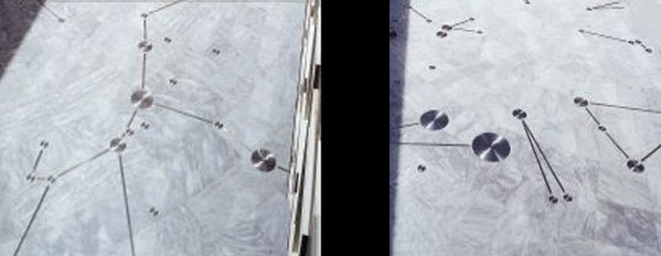 銀河系中既可在北半球、又可在南半球看到的抽象星座,以拋光過的近似圓形鍍鉻不銹鋼條的形式被鑲嵌在大理石地面上,其位置均符合各星座在天上的實際位置。北極和南極(東院和西院)間的主軸線從作為咖啡廳的地下通道的中心斜向穿過。兩極在南北立面的中心,而這兩個立面就在兩個相通內院旁。