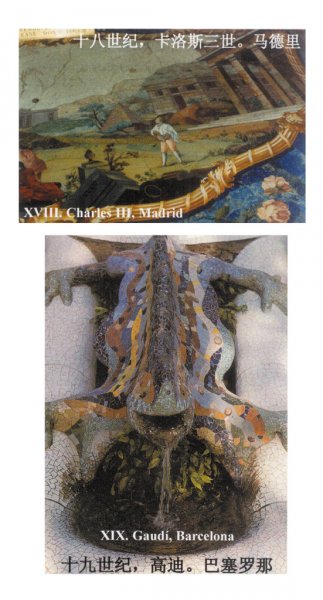 我們可以強調高迪的形象,他以其奇特的高樓聞名于世。他利用鑲嵌工藝來裝飾他設計的大樓,這些大樓擁有宏偉壯觀的鑲嵌工藝品貼面的雕刻,嵌面在用錘和鉗從瓷磚開始敲打切割而成,實際上是粗加工的嵌面石。“拉貝德雷拉米拉之家”是其樣品之一,正如用奇特和別出心裁的鑲嵌工藝品裝飾的“古埃爾公園”一樣。