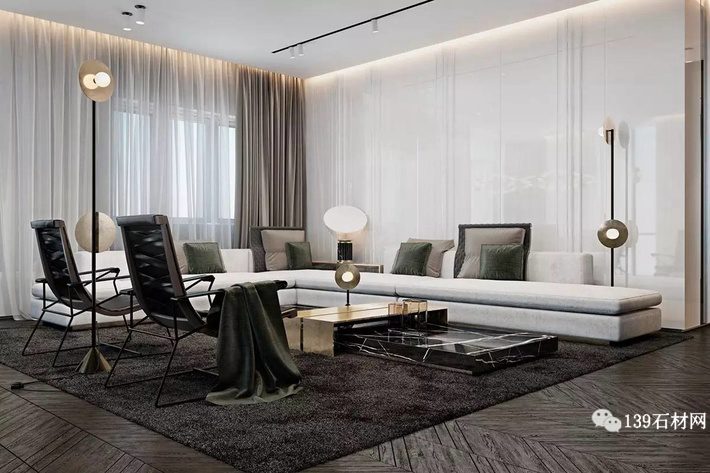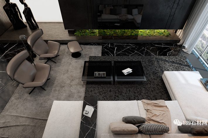 最后來看兩張實物案例,財富公館的黑白根裝飾效果