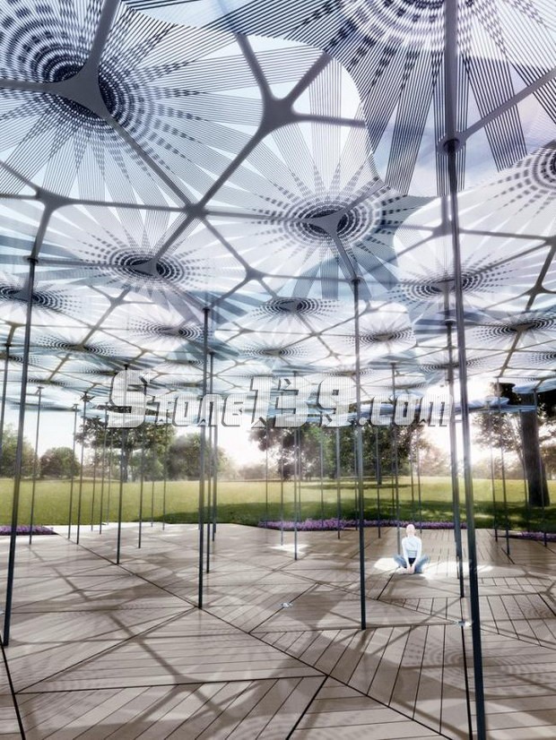 在維多利亞女王的花園,由AL_A建筑事務所的英國建筑師Amanda Levete所設計的臨時建筑將使用最新使用在航海工程上的技術,看起來就如同森林中的樹冠。