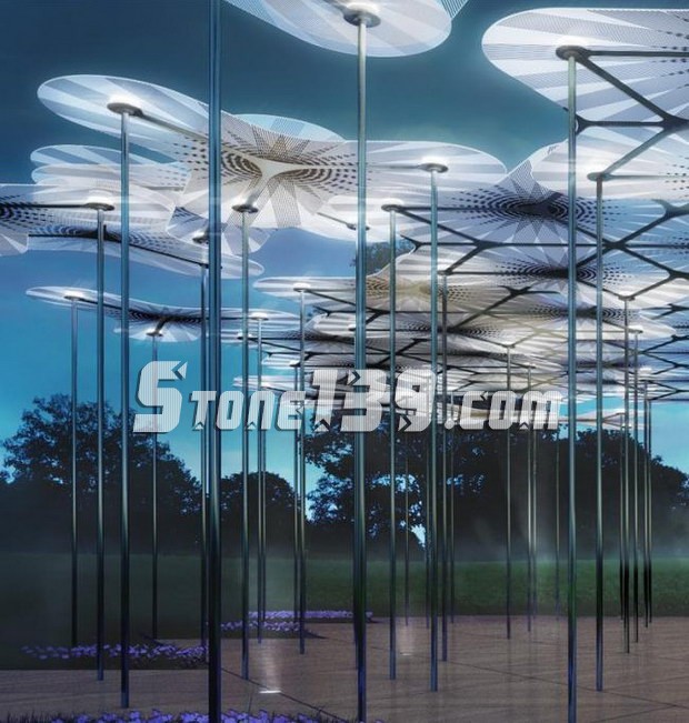 她設計的而這一系列共有三個構成部分——由超薄透明的復合和碳纖維制成的五米寬的花瓣將在纖細的柱子上“搖擺”,意在模仿樹木的自然搖擺。