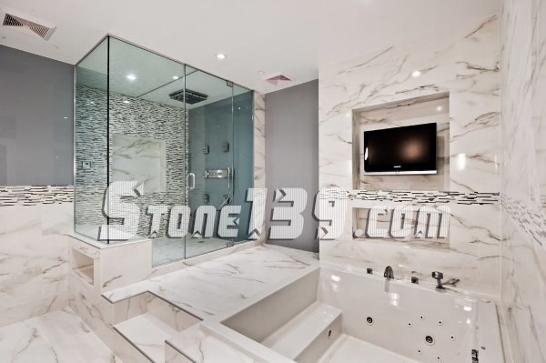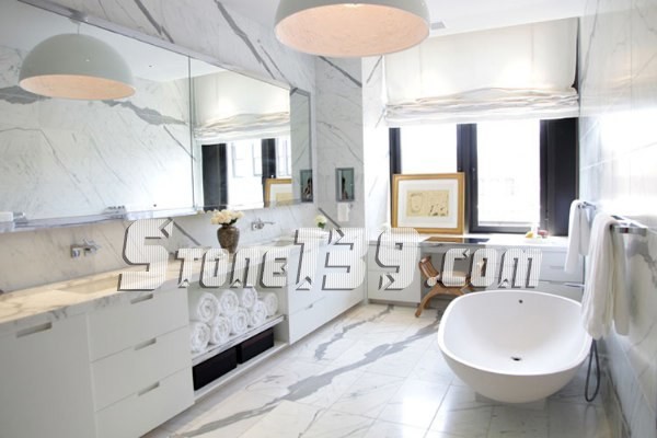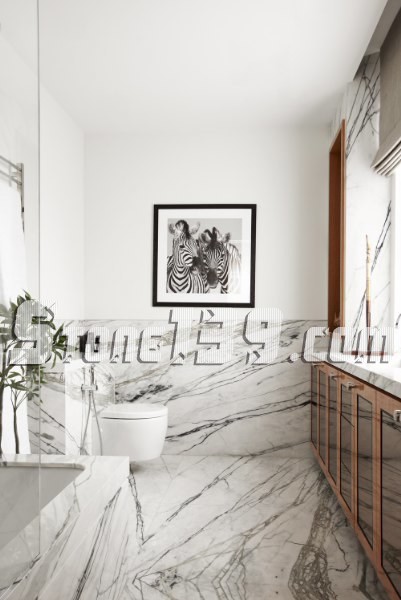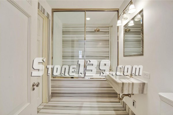 直紋白(馬爾馬拉白)是一種獨特的大理石,就像上面例子,水平平衡的大理石組合展示一個現代化的精致浴室,其優雅的氛圍讓你的家看起來像一個豪華酒店。