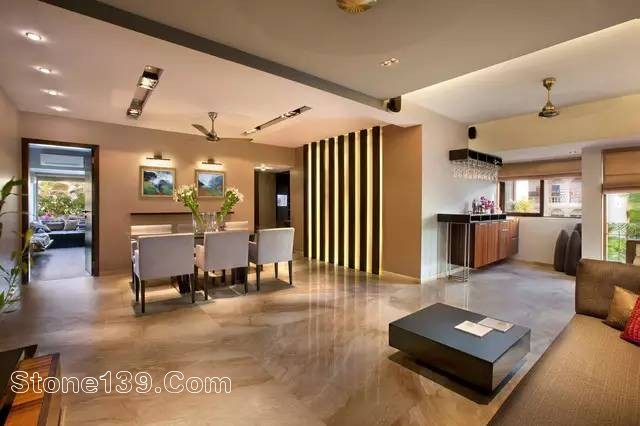 大理石成為墻壁或者地板的一部分,接下來說這個實例,正好與上文的“少即是多”相契合。如果整個墻壁,或者整面地板都鋪設(shè)大理石的話,給人的感覺就是太過沉重和冰冷了。