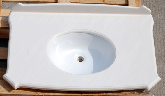 浴室柜臺面一般以大理石、人造石(壓顆粒)、玻璃、陶瓷等。