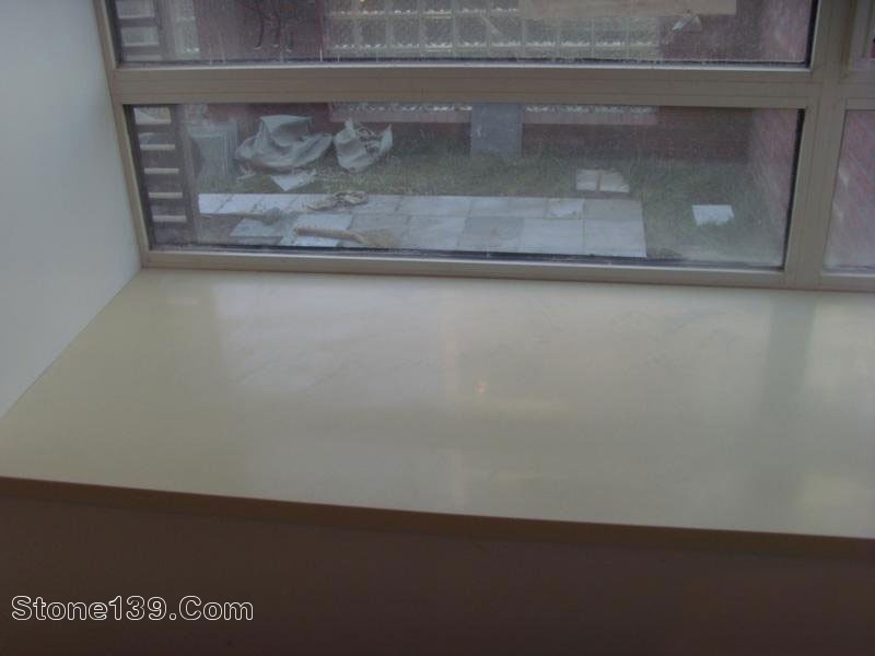 3、多塊拼接窗臺板不平、不直:加工窗臺板長、寬超偏差,厚度不一致。施工時應注意同規格在同部位使用。