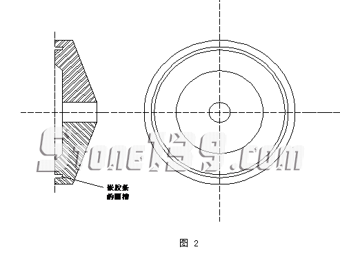(2)為了增加鋸片的彈性,使其受力均勻,在夾盤(pán)上開(kāi)一圈槽,嵌入橡膠條或軟金屬。如圖2: