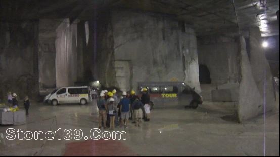 這個(gè)洞采礦山始建于上個(gè)世紀(jì)五十年代,首先考慮的是環(huán)境保護(hù)的問題,這種開采方式避免了對(duì)地表的破壞,其次還避免了露采礦山浩大的剝離量和廢渣排放。由于采用鏈臂鋸、帶鋸、繩鋸進(jìn)行鋸切,所以荒料率大大高于露采礦山;還有,廢棄的洞室還可用于旅游、歌廳、酒吧、工廠、倉庫等。