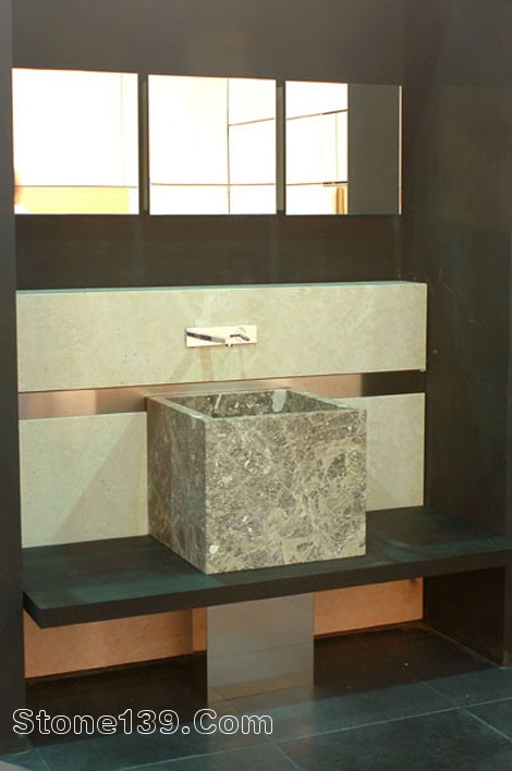 大理石洗手盆 灰色 米黃色系