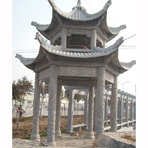 石雕涼亭體量小,平面嚴(yán)謹(jǐn)。自點(diǎn)狀傘亭起,三角、正方、長方、六角、八角以至圓形、海棠形、扇形,由簡單而復(fù)雜,基本上都是規(guī)則幾何形體,或再加以組合變形。根據(jù)這個(gè)道理,可構(gòu)思其他形狀,也可以和其他園林建筑如花架、長廊、水榭組合成一組建筑。石雕亭子的平面組成比較單純,除柱子、坐凳(椅)、欄桿,有時(shí)也有一段墻體、桌、碑、井、鏡、匾等。石雕亭子的平面布置,一種是一個(gè)出入口,終點(diǎn)式的;還有一種是兩個(gè)出入口,穿過式的。視亭大小而采亭子用石雕亭子的立面,因款式的不同有很大的差異。但有一點(diǎn)是共同的,就是內(nèi)外空間相互滲透,立面顯得開暢通透。個(gè)別有四面裝門窗的,如蘇州拙政園的塔影亭,這說明其功能已逐漸向?qū)嵱梅矫孓D(zhuǎn)化。石雕涼亭的立面,可以分成幾種類型。這是決定石雕亭子風(fēng)格款式的主要因素。如:中國古典、西洋古典傳統(tǒng)式樣。這種類型都有程式可依,困難的是施工十分繁復(fù)。中國傳統(tǒng)石雕亭子柱子有木和石兩種,用真材或砼仿制;但屋蓋變化多,如以砼代木,則所費(fèi)工、料均不合算,效果也不甚理想。西洋傳統(tǒng)型式,現(xiàn)在市面有各種規(guī)格的玻璃鋼、GRC柱式、檐口,可在結(jié)構(gòu)外套用。平頂、斜坡、曲線各種新式樣。要注意石雕亭子平面和組成均甚簡潔,觀賞功能又強(qiáng),因此屋面變化無妨要多一些。如做成折板、弧形、波浪形,或者用新型建材、瓦、板材;或者強(qiáng)調(diào)某一部分構(gòu)件和裝修,來豐富石雕亭子外立面。仿自然、野趣的式樣。目前用得多的是竹、松木、棕櫚等植物外型或木結(jié)構(gòu),真實(shí)石材或仿石結(jié)構(gòu),用茅草作頂也特別有表現(xiàn)力。帳幕等新式樣,以其自然柔和的曲線,應(yīng)用日漸增多。