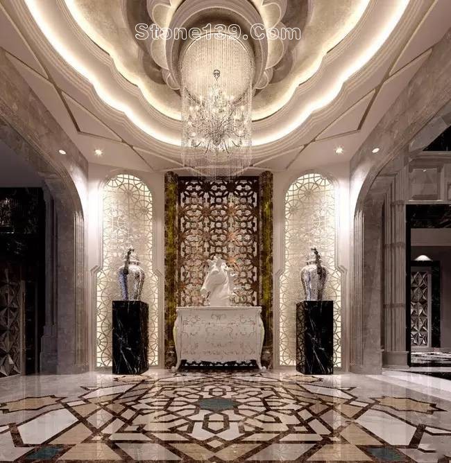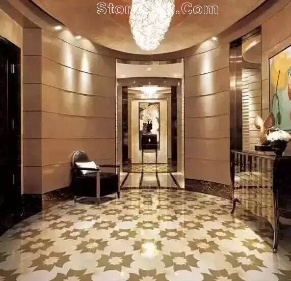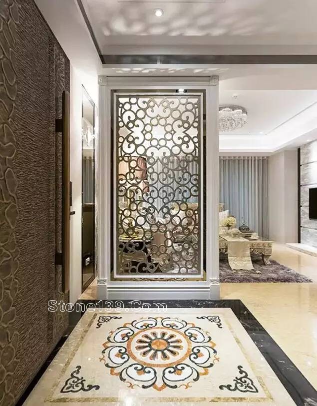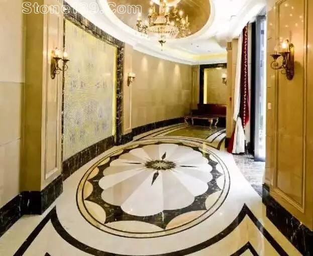石材地板拼花裝飾 石材拼花的運(yùn)用能夠大大的提升整個(gè)裝修環(huán)境的檔次,好的石材拼花設(shè)計(jì)一定是美觀實(shí)用,藝術(shù)性強(qiáng)的作品。要設(shè)計(jì)出消費(fèi)者喜愛(ài)的石材拼花產(chǎn)品,就一定要深入生活、觀察了解人們的喜愛(ài)與需求,從生活中捕捉創(chuàng)作靈感。同時(shí)要結(jié)合好居所的實(shí)際情況,和外部的環(huán)境以及整體的裝修裝飾風(fēng)格,協(xié)調(diào)統(tǒng)一又有特色才是最成功的。石材拼花不一定要多而花,其實(shí)簡(jiǎn)單拼花有時(shí)候會(huì)更好看。總之,石材拼花要根據(jù)整體裝飾設(shè)計(jì)風(fēng)格而定。下面就來(lái)欣賞幾款地板拼花。