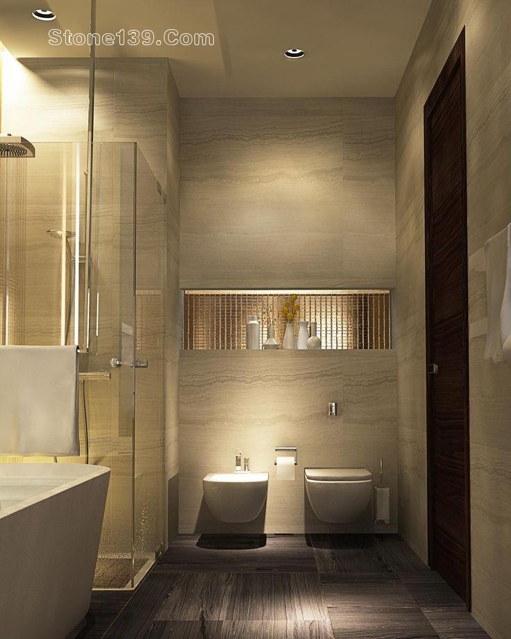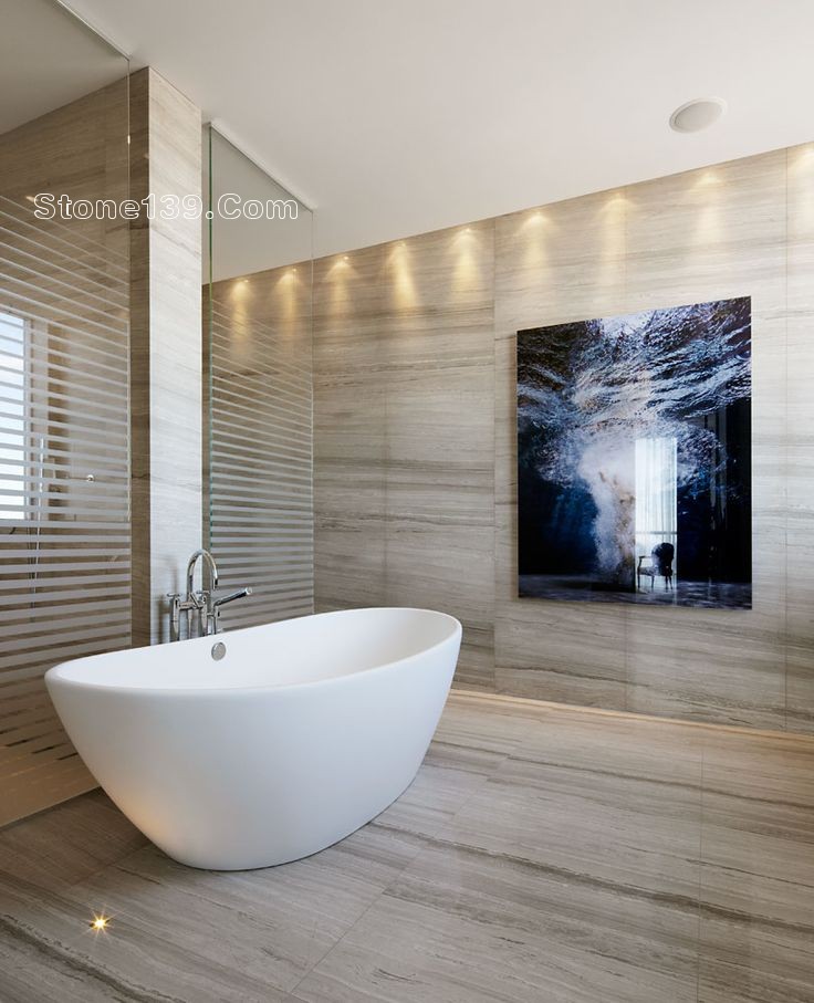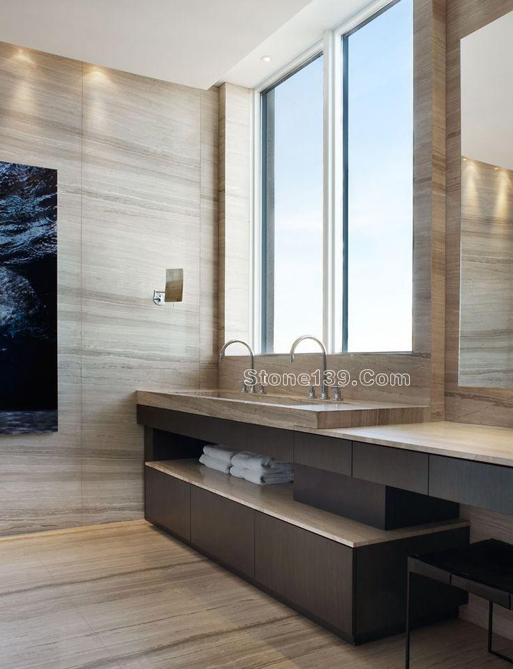 核心摘要:在石材行業,只要經過切割加工后具有類木質紋理的石材都可以稱謂木紋石。因加工切割方式不同,在縱切是木紋,橫切可呈現云紋,水紋或者類似年輪的紋理。今天主要給主要給大家分享一些天然木紋紋理的石材裝飾的衛生間應用案例,不細看的消費者還以為會是木材裝飾的衛生間!