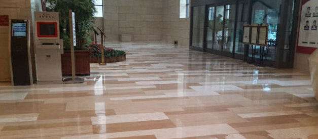 此次案例分享是某銀行總部大廈,地面洞石的污染清洗、光固化、整體研磨、結晶硬化處理工程。總面積:1700平方。