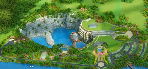近日,位于上海市松江區的“深坑酒店”正在進行鋼結構施工,將于7月底實現主體結構封頂。建設方預計,2017年底酒店可實現工程竣工并試營業。“深坑酒店”選址在舊礦場形成的深坑,建成后酒店將擁有370間客房,包括地上兩層、地下17層和水下兩層。