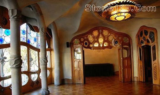 米拉公寓的內(nèi)部,每一戶都能雙面采光,光線由采光中庭和外面街道進(jìn)來(lái),房間的形狀也幾乎全是圓型設(shè)計(jì),天花板、窗戶、走廊、很少有正方的矩形。米拉之家有一些宗教色彩,在它的外墻高處可以看到一個(gè) M 字,代表圣母瑪利雅 Maria,可以看到一朵玫瑰浮雕,代表圣母瑪利雅(Virgen del Rosario / Our Lady of the Rosary),也代表米拉夫人的名子 Roser,可以看到一行浮雕的字“Ave - Gratia - M - Plena - Dominus - Tecum”,代表“上帝拯救你,瑪利雅,你充滿恩典,上帝與你同在”。
