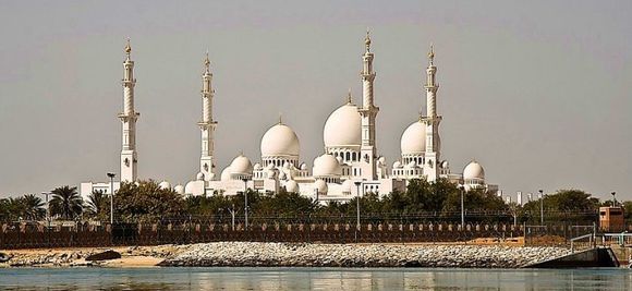 阿布扎比大清真寺,是阿聯(lián)酋七國最大的清真寺,世界地位名列第八,位于首都阿布扎比的穆薩法大橋和馬格達大橋兩座橋梁之間。這是為紀念阿聯(lián)酋已故總統(tǒng)謝赫扎義德·本·蘇爾丹而建造的清真寺,所以又名謝赫扎義德大清真寺,寺內有他的陵墓。如果嘗試用一個詞語去描述扎耶德清真寺,恐怕只能用“震撼”這個詞語。雪白的大理石圓頂及墻面,在陽光下隱隱發(fā)亮,白得一塵不染。清真寺前湛藍的一池清水,映襯著清真寺的倒影,和建筑物渾然一體,打造出一個圣潔的祈禱。
